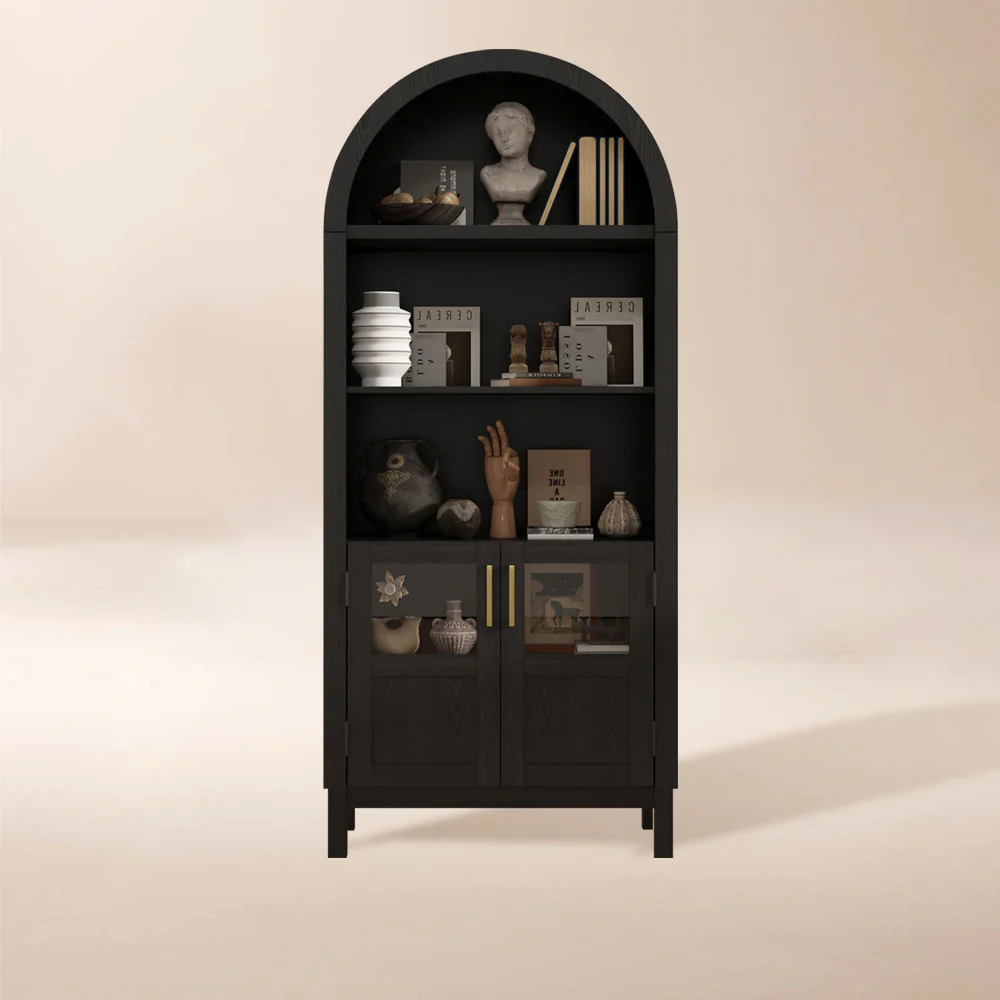 Chash Arched Cabinet 70" Tall Cabinet with Glass Doors and Open Adjustable Shelves in Black