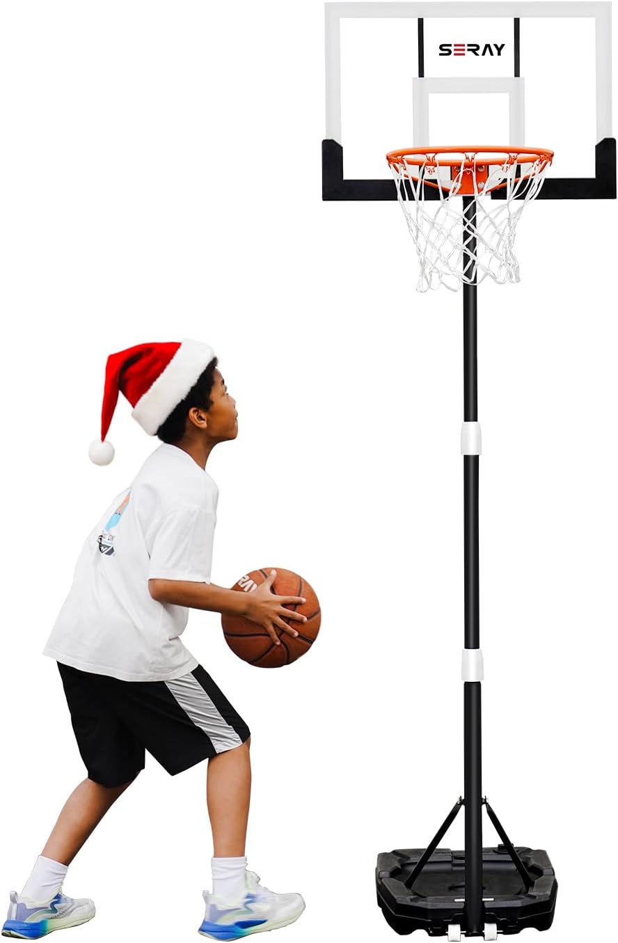 Kids Basketball Hoop Outdoor 3.2-7.2ft Adjustable, Portable Basketball Hoop & Goals for Kids/Teens/Youth in Pool/Backyard/Driveway/Indoor, 29 Inch Shatterproof Backboard and Enlarged Base