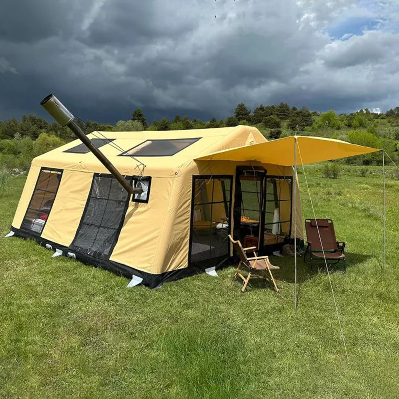 💥Clearance💥6 Person Outdoor Camping Inflatable Tent Green, Inverted V-Shaped Roof, Waterproof Oxford Cloth and PVC