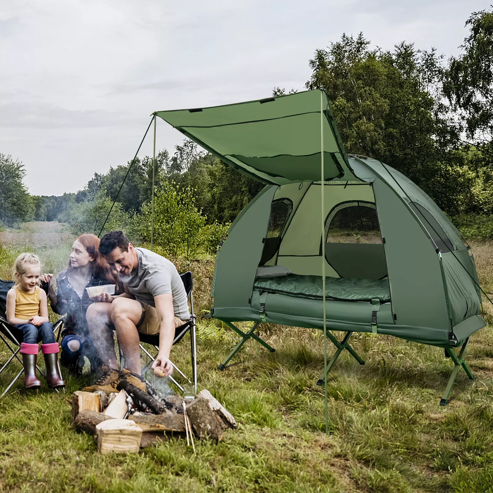 1-Person Portable Pop-Up Tent Waterproof Camping Cot with Sleeping Bag