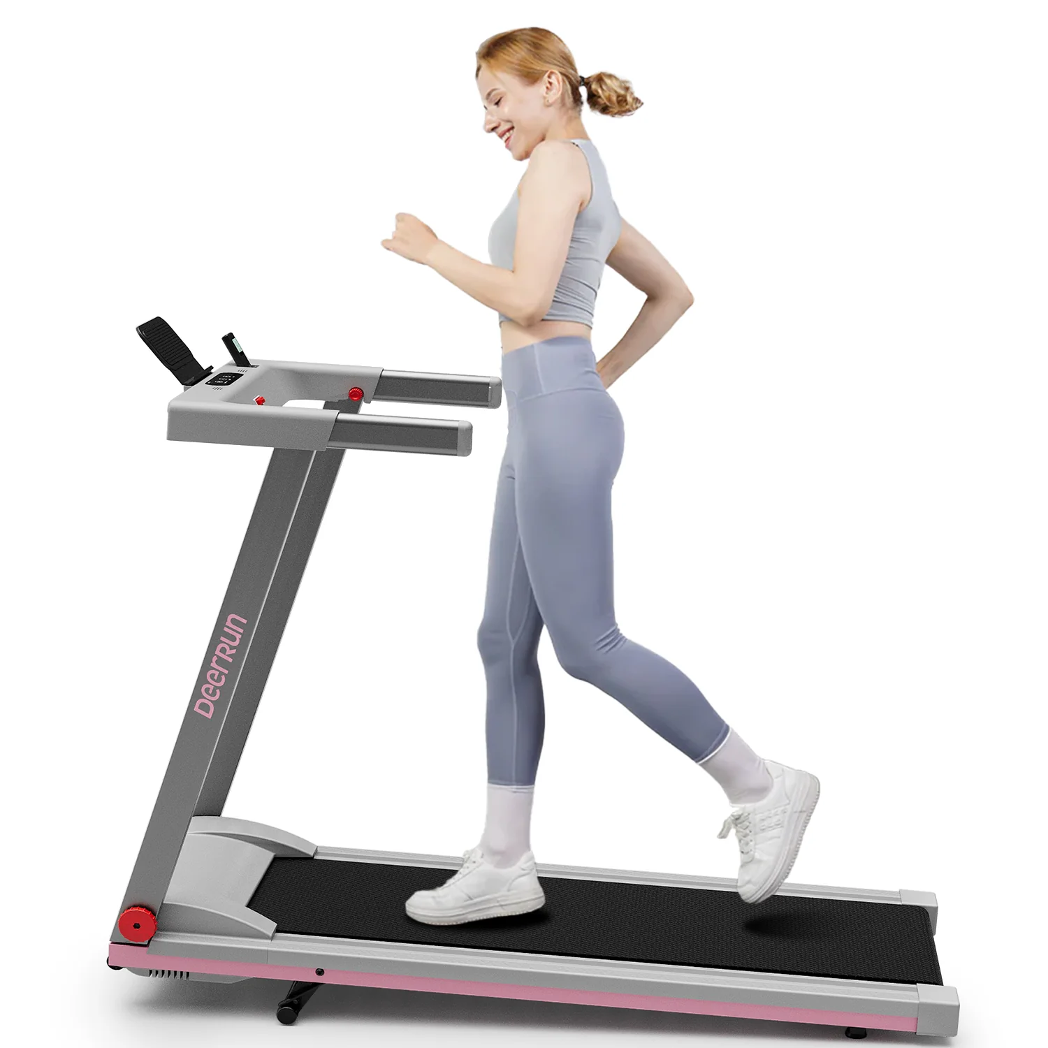 Folding Smart Treadmill with 6% Incline Pink Grey- Support Bluetooth & Remote Wireless Control