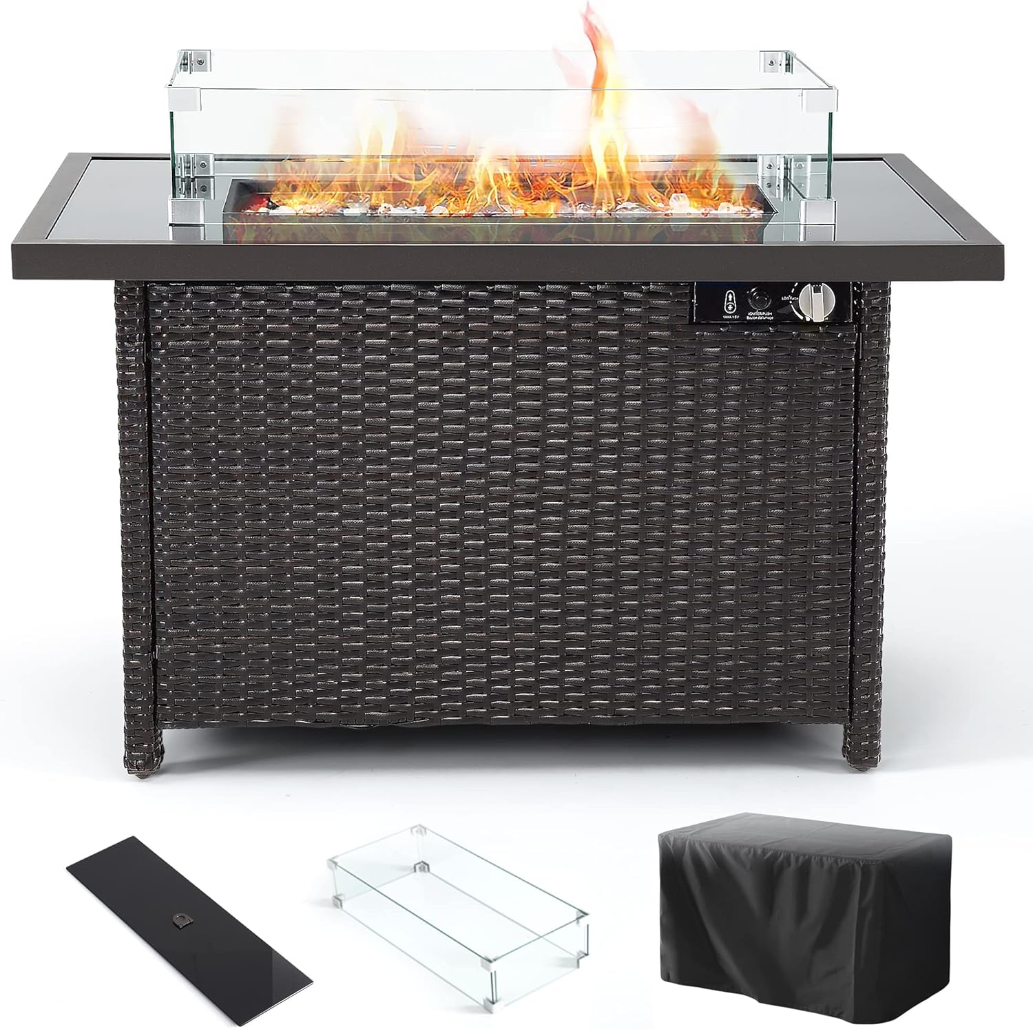 Propane Fire Pits, Auto-Ignition Outdoor Fire Pit Table with Glass Wind Guard,41 Inch Outdoor Fire Tables for Patio Garden Deck Backyard Poolside