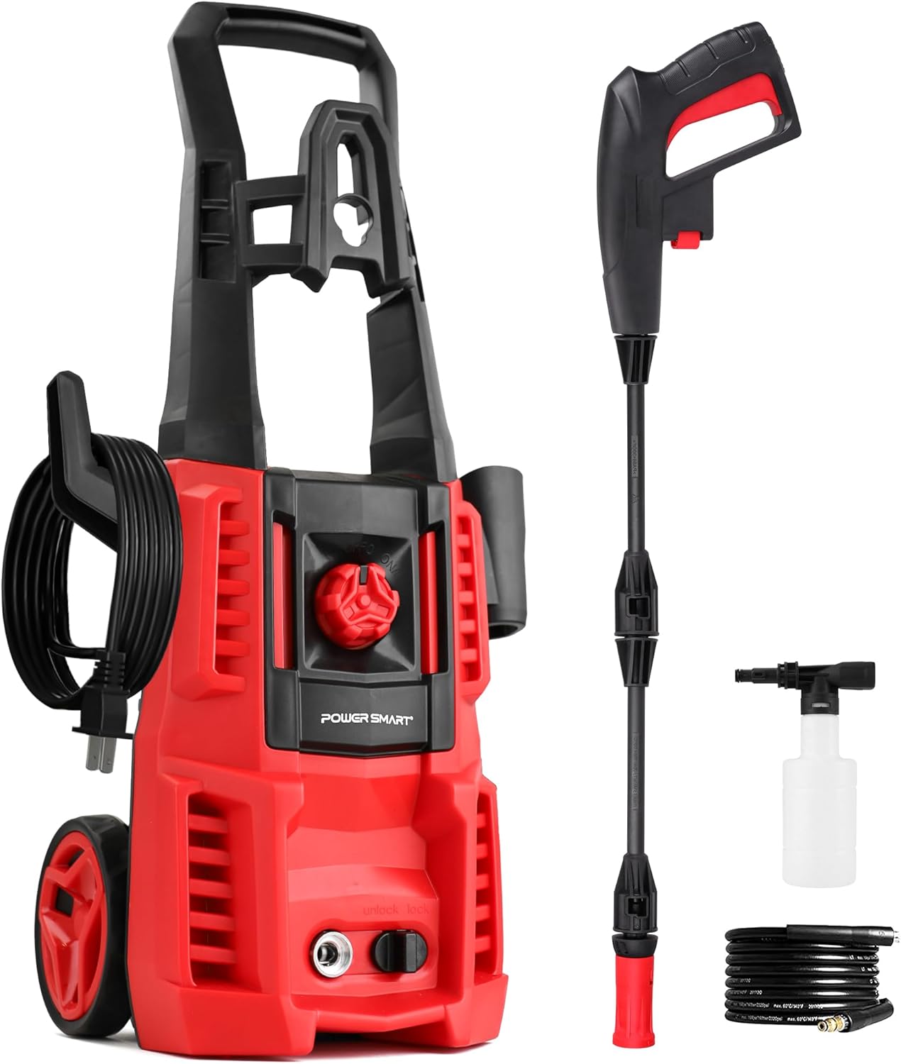 Electric Pressure Washer 2200 MAX PSI, 1.2 GPM with Onboard Soap Tank, Metal Spray Wand, 5 Nozzle Set for Cars, Patio, Decks, and Fences
